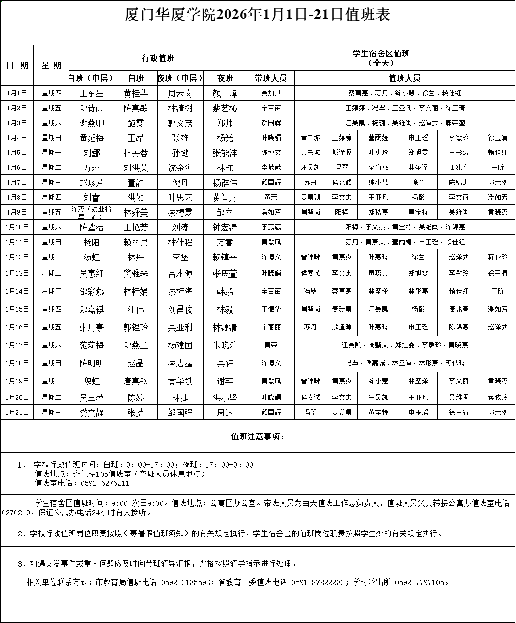 下一条:厦门华厦学院2025年12月1日-31日值班表