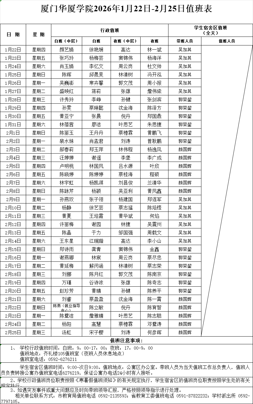 下一条:厦门华厦学院2026年1月1日-21日值班表