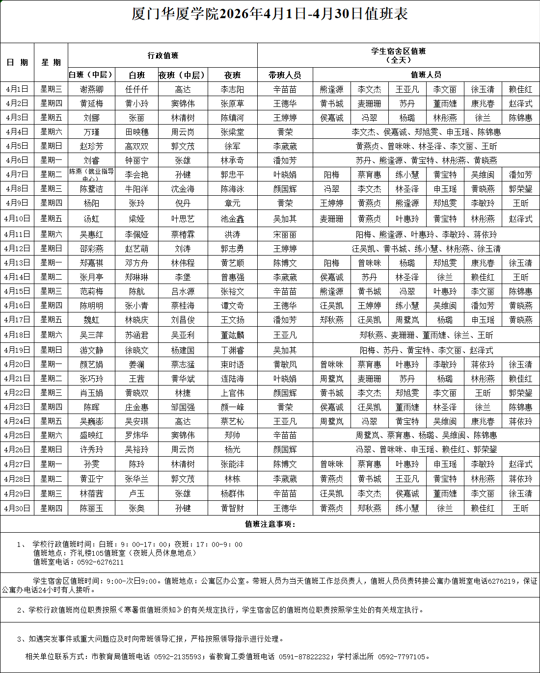 上一条:厦门华厦学院2026年清明节放假通知 下一条:厦门华厦学院2026年2月26日-3月31日值班表