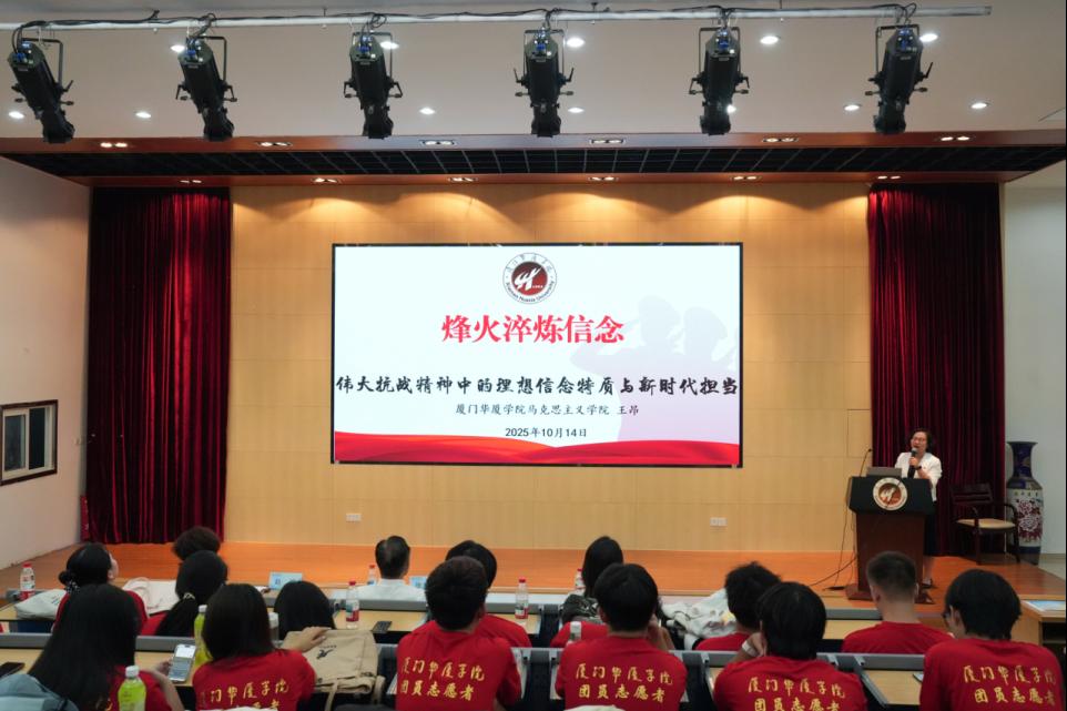 2025年10月14日下午,厦门华厦学院举办思想者讲堂主题活动,校党委书记徐志怀,校党委委员、工会主席、副校长赵丽,校党委委员、纪委书记、副校长唐维萍出席。论坛由校党委委员、宣传部部长孙键主持。学校团学骨干和马克思主义学院教师近200人参加活动。