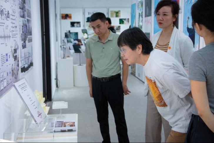 学术委员会主任王小如仔细欣赏学生获奖作品