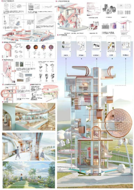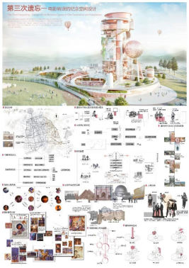 环境设计展区内容丰富多彩、主题多元,其中不乏一些获奖优秀作品。例如,作品《第三次遗忘》聚焦于我国人口老龄化的问题,以电影《寻梦环游记》的生死观为灵感,打造一个专属的用于缅怀与回忆的纪念场地,为墓地纪念空间设计开辟全新思路,该作品获得十三届全国大学生数字媒体科技作品及创意竞赛(国赛)三等奖。作品《静砚茶寮》以新中式风格为基调,融合传统东方美学与现代几何设计语言,打造静谧雅致的品茗空间,构建“刚柔并济”的当代东方意境,实现功能性与艺术性的统一,该作品获得第十三届未来设计师全国高校数学艺术设计大赛(省赛)二等奖。除此之外,《聆音听景,生“声”不息》《CHAIEL·炽焰羊城》《筑境共生》等环设作品,也均在国赛、省赛等大大小小赛事中摘获殊荣。