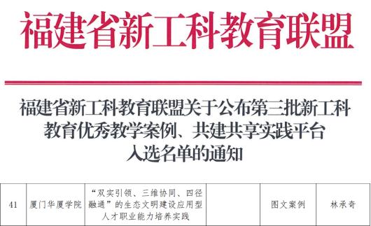 近日,福建省新工科教育联盟,福建省高校课程思政教育联盟相继公布了“第三批新工科教育优秀教学案例入选名单”及“第三批课程思政优秀教学案例征集入选名单”。我校有1个案例入选第三批新工科教育优秀教学案例,3个案例入选第三批课程思政优秀教学案例。