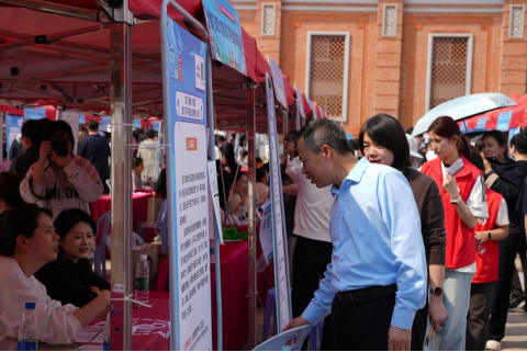 (党委书记徐志怀、党委副书记陈熙贞招聘会现场走访)