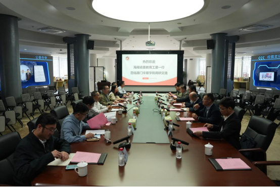 3月27日上午,海南省委教育工委思政处处长周晓东、海口经济学院党委书记谭勇、三亚中瑞酒店管理职业学院党委书记贾有维、海南健康管理职业技术学院党委书记张伟、海南东方新丝路职业学院党委书记陈晓波、海南师范大学统战部副部长莫天福等一行莅临学校调研交流党建与思政工作。学校党委书记徐志怀,党委委员、副校长张宏及相关党务部门负责人参加座谈并陪同调研。