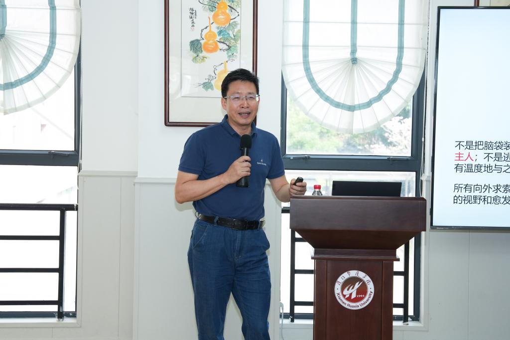 活动中,解荣军教授以先辈科学家求学报国事迹开篇,阐释科学报国、将个人理想融入民族复兴事业的初心,一句“求学,是为了让国家挺起脊梁!”引发全场共鸣。他结合自身求学科研经历,讲述恩师的悉心指引,引用教育名言诠释教育本质,同时分享了因材施教、包容育人的教学理念,通过搭建平台助力学生成长成才,其门下涌现出众多优秀学子,奔赴各行各业发光发热。他的谆谆教诲与科研育人感悟,为在场师生注入了奋进力量,引发大家深度思考。