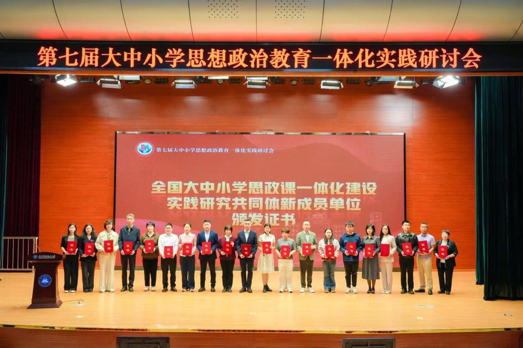 会上,全国大中小学思政课一体化建设实践研究共同体新成员单位名单的发布作为会议首项成果,包括厦门华厦学院马克思主义学院在内的65家覆盖从幼儿园到高校的全学段,涉及基础教育、职业教育、高等教育及科研机构等多个领域新一批成员单位加入共同体。人民日报社理论部部务委员、马克思主义理论与党建编辑室主编王云松,全国大中小学思政课一体化建设实践研究共同体专家指导委员会专家委员、北京青年政治学院纪委书记何裕,全国大中小学思政课一体化建设实践研究共同体专家指导委员会秘书长、北京工业大学马克思主义学院党委书记安哲锋等嘉宾为共同体新成员单位颁发证书。